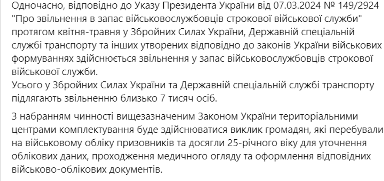 Президент Украины Владимир Зеленский 2 апреля подписал законопроект, который ранее предусматривал, что лица в возрасте с 18 до 27 лет считались призывниками и не подлежали мобилизации. Теперь же предельный возраст таких мужчин уже снижен до 25 лет.