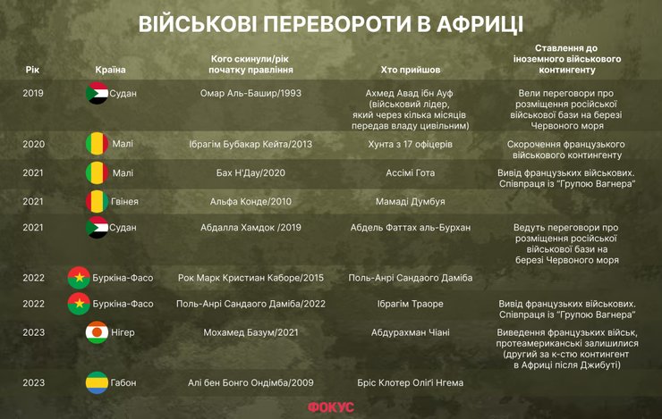 По информации Главного управления разведки Минобороны Украины, сейчас Россия формирует так называемый "Африканский корпус" — 20-тысячное войско, которое планирует открыть свои базы в пяти "дружественных" странах с целью расширения влияния на этой территории — Буркина-Фасо, Ливии, Мали, ЦАР и Нигере.