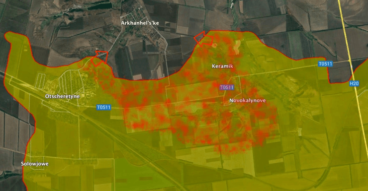 Юлиан Репке рассказал, что россияне полностью захватили Очеретино и продвигаются дальше на запад вдоль железнодорожной линии. Эксперт добавил, что российские войска захватили Новокалиново и Керамик. Также он отметил, что началась атака на Архангельское с двух направлений. Украинские силы уступают в оружии и численности и не могут остановить их.