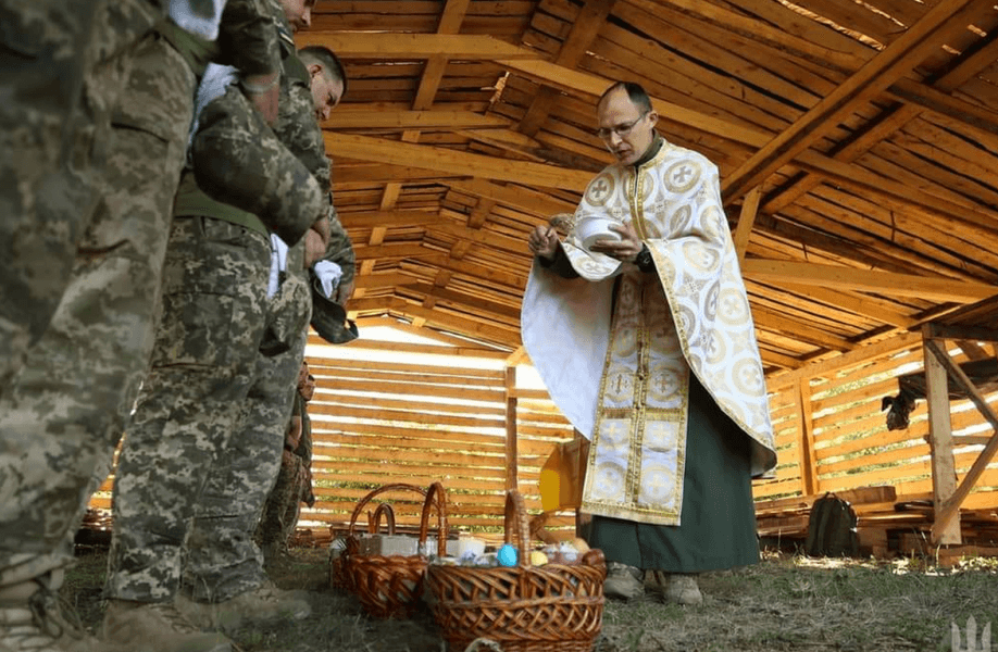 Бойцы 30-й отдельной механизированной бригады им. князя Константина Острожского показали, как капеллан освящал пасхальные блюда. Празднуя сегодня этот день времена войны, как отметили защитники, этим свидетельствуют, что видят в Воскресении Христовом и победу над врагом.