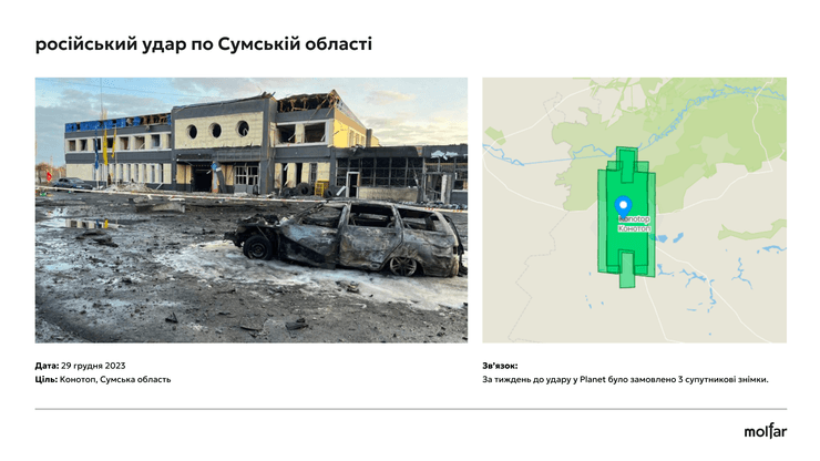 Журналисты американского журнала The Atlantic еще в марте писали о возможной связи между продажей спутниковых снимков коммерческими аэрокосмическими компаниями и ракетными ударами России по Украине. То есть сначала происходит продажа спутниковых фото определенного участка на территории Украины, а уже через несколько дней туда прилетает российская ракета. HUMINT-аналитики Molfar проверили, как и кому компании, утверждающие о якобы тщательной проверке клиентов, предоставляли свои спутниковые снимки.