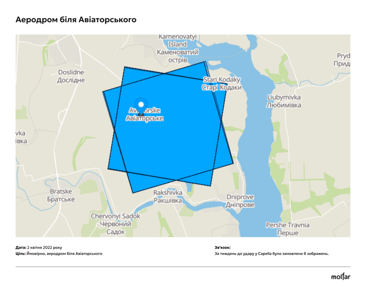 26 марта 2022 года россияне двумя ракетами разрушили танкостроительный завод и нефтебазу во Львове. 8 спутниковых снимков, на которые попали координаты удара, были заказаны у компаний Beijing Space View Tech и 21AT за несколько дней до атаки, 23-25 марта, и еще два снимка через два дня после удара, 28 марта.