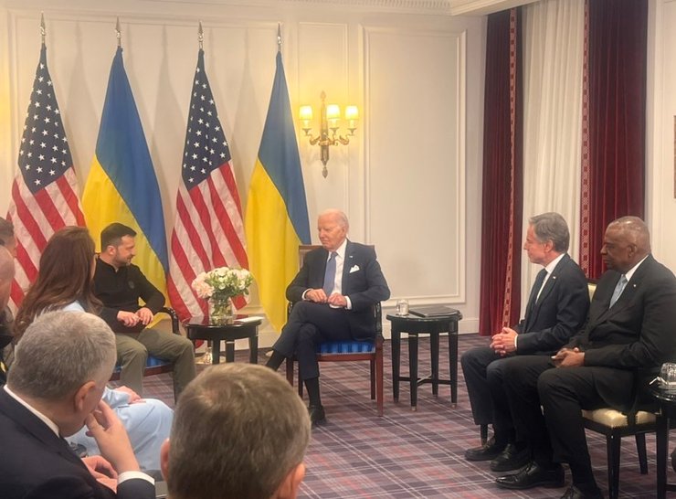 На фото со встречи, которое обнародовала журналистка, заметно, что там также присутствуют глава Пентагона Ллойд Остин и государственный секретарь Энтони Блинкен.