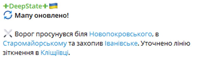 DeepState сообщил о захвате Ивановского: в ВСУ это опровергают (карта)