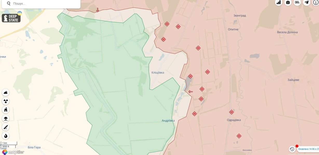 Силы обороны смогли сделать так, что российские оккупанты вынуждены были отступить на двух участках фронта. Речь идет о Серебрянском лесничестве на Луганщине и Клещиевке в Донецкой области. Об этом 15 июня сообщили аналитики DeepState.