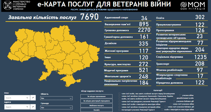 "е-Карта — это по сути агрегатор данных, которого не хватало ветеранскому сообществу. Теперь все, что нужно ветеранам и ветеранкам, можно быстро найти через свой смартфон или компьютер, указав лишь область или свою территориальную общину", — рассказал и.о. министра по делам ветеранов Украины Александр Порхун.