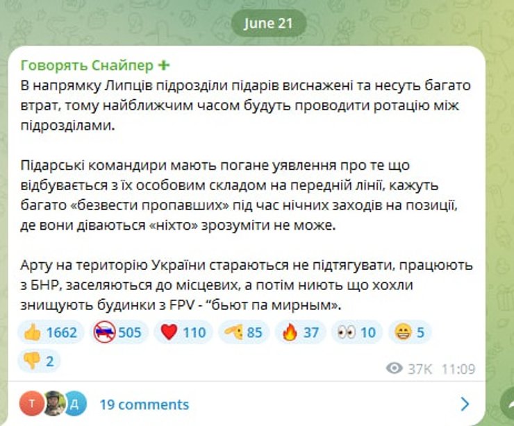 "В направлении Липцев подразделения п**аров истощены и несут много потерь, поэтому в ближайшее время будут проводить ротацию между подразделениями. П**арские командиры имеют плохое представление о том, что происходит с их личным составом на передней линии, говорят много "без вести пропавших" во время ночных мероприятий на позиции, где они деваются "никто" понять не может", — проинформировал он.