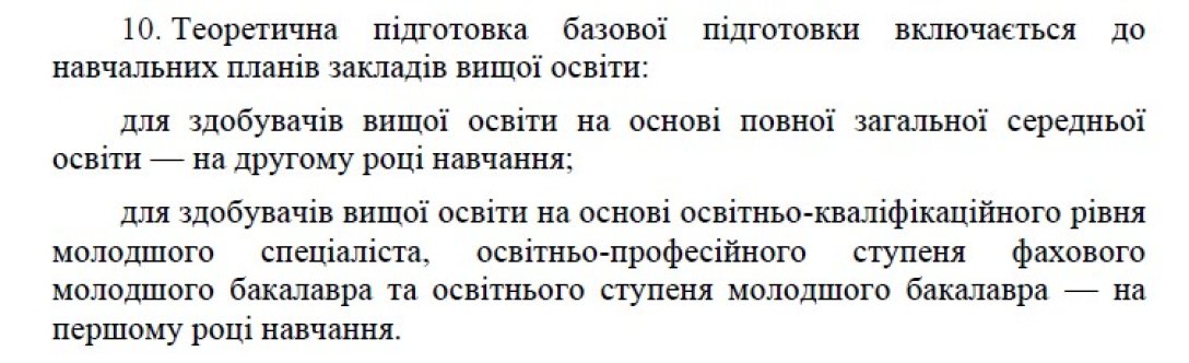 Граждане, которые получают высшее образование, должны обязательно пройти базовую военные подготовку, указывается в постановлении Кабмина. Если этого не сделать, университет имеет право отчислить учащегося.