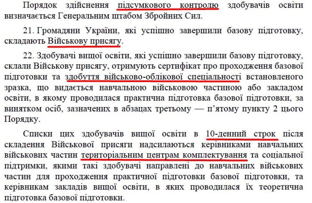 Украинские чиновники утвердили постановление №734 от 21 июня 2024 года. В нем говорится о базовой общевойсковой подготовке граждан, которые учатся в высших учебных заведениях, а также в учреждениях, где готовят полицейских.
