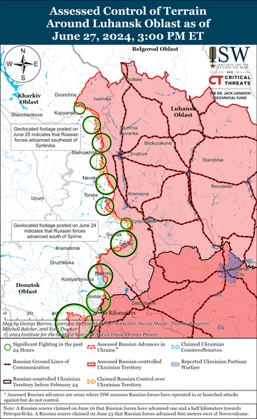 Аналитики отмечают, что российские силы, вероятно, пытаются воспользоваться тем, что возобновление наступательных операций на севере Харьковской области оттянуло украинские силы с других участков фронта. Это должно было бы способствовать успехам России на ключевых участках фронта, особенно в Донецкой области. Однако вместо продвижения на Покровском направлении или захвата Часового Яра, российские силы активизировали действия на ранее неактивном участке фронта.