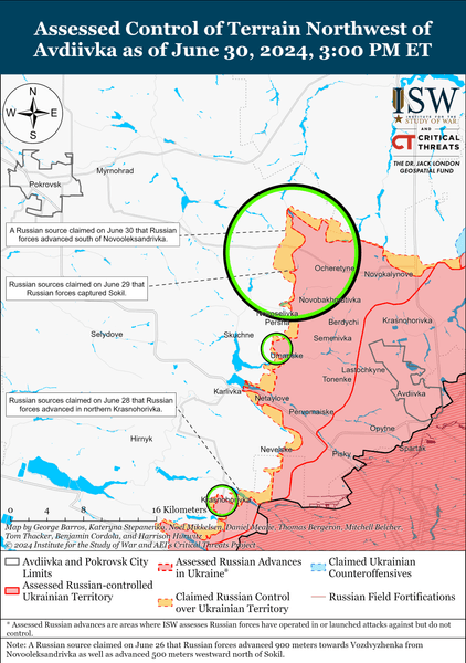 В Минобороны РФ утверждали, что элементы российского десантно-штурмового отряда "Ветераны" якобы продвинулись по подземному тоннелю и захватили большой украинский опорный пункт на восточной окраине Северного, заставив Силы обороны сдаться и отступить с этих позиций. Однако аналитики ISW не наблюдали визуального подтверждения этого заявления.