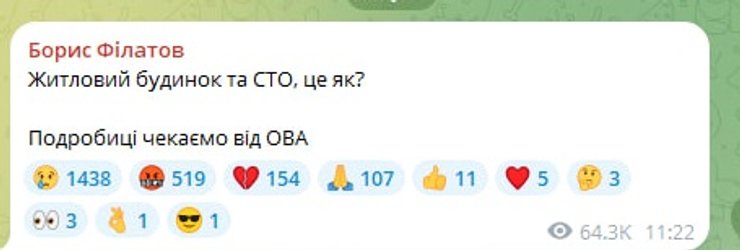 "Жилой дом и СТО, это как? Подробности ждем от ОВА", — написал Филатов.