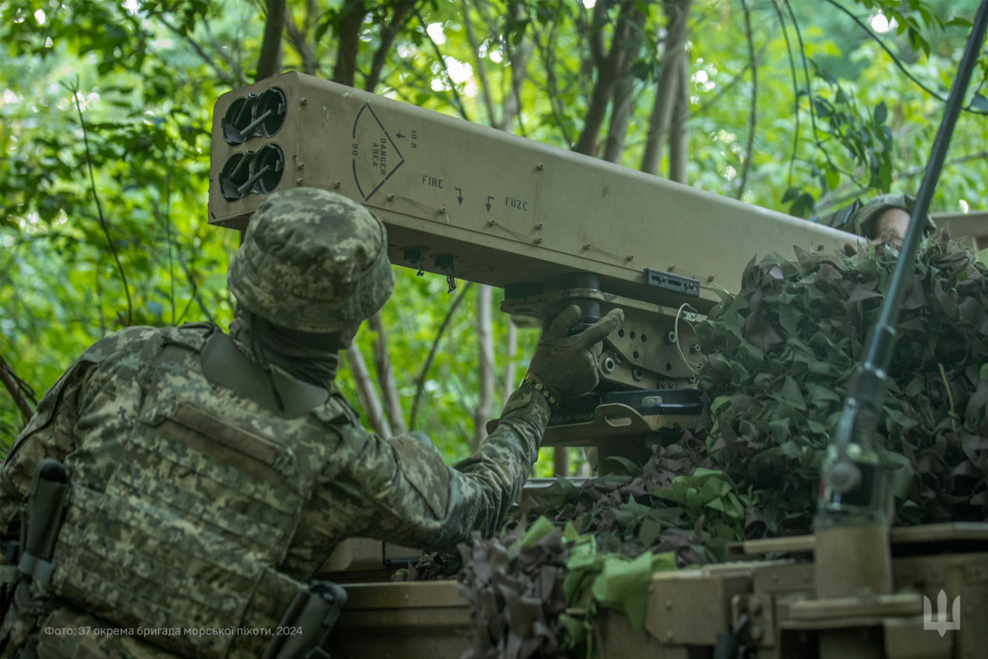 37-я отдельная бригада морской пехоты Украины 6 июля поделилась в Facebook фотографиями, на которых запечатлен бронированный автомобиль Humvee. Машина оснащена четырехствольной пусковой установкой Arnold Defense LAND-LGR4, подчеркивая боевую эффективность этой конфигурации. Как рассказали обозреватели Army Recognition, данная система ведет огонь по наземным целям ракетами Advanced Precision Kill Weapon System II (APKWS II).