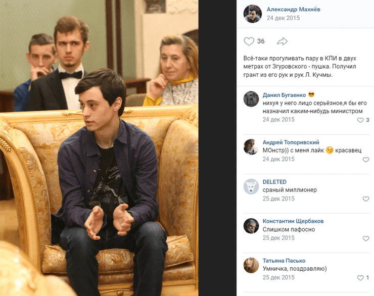 В 2015 году Александр Махнев хвастался в социальных сетях наградой, которую получил из рук ученого Михаила Згуровского и второго президента Украины Леонида Кучмы. Однако магистратуру украинец уже заканчивал в Московском физико-техническом институте.