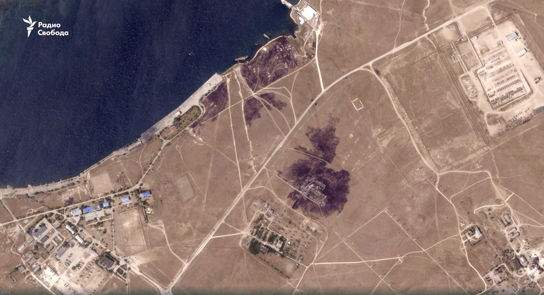 СБУ 18 июля нанесли удар по российской военной базе на озере Донузлав. Сейчас появились снимки, на которых можно заметить следы пожаров.