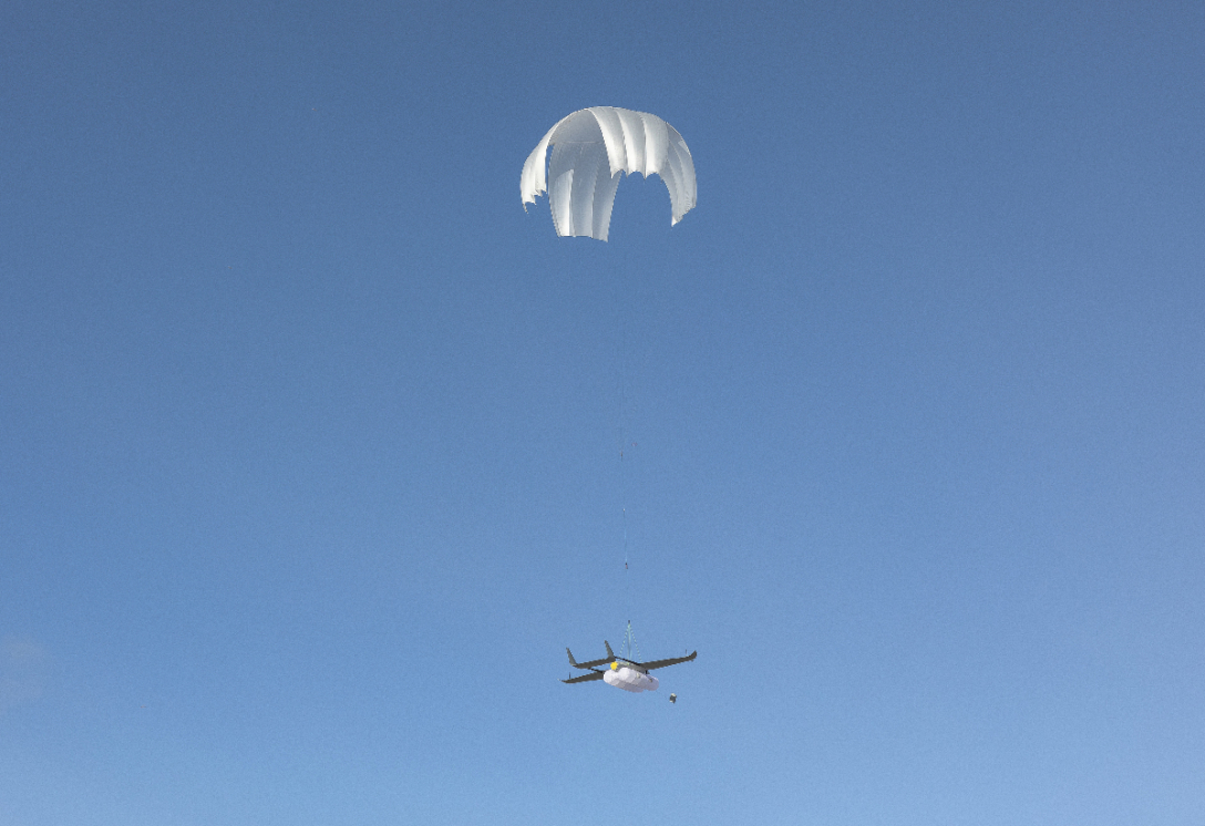 Дрон выполняет задание, а затем возвращается на парашюте