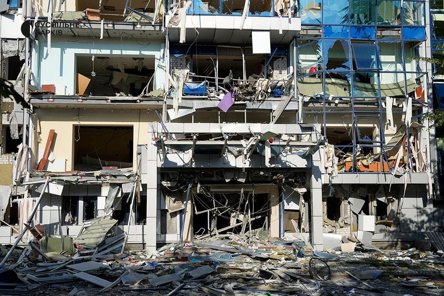 В результате ракетного удара в Харькове, как сообщил глава ХОВА, повреждено здание гуманитарного фонда, пять автомобилей и дом. В селе рядом разрушен экопарк.