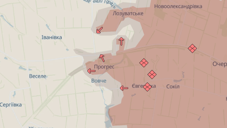 По данным Генерального штаба ВСУ, по состоянию на 16:00 оккупанты при поддержке авиации осуществили 22 попытки потеснить украинские войска с занимаемых позиций в районах Волчьего, Прогресса, Новоселовки Первой, Воздвиженки, Новоалександровки, Карловки и Желанного.