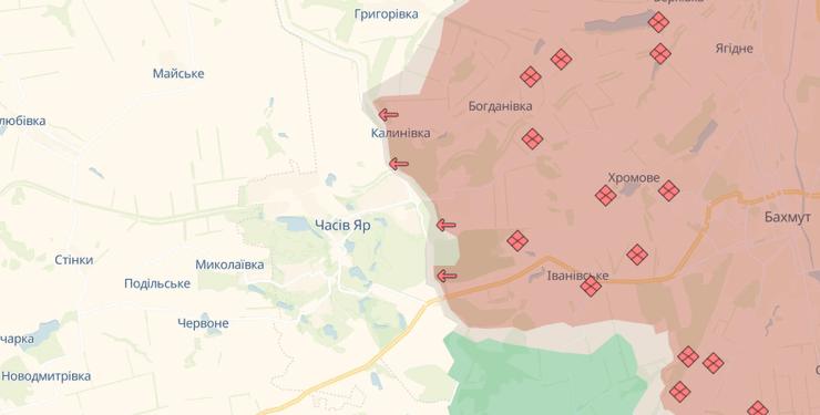 Угрозы оперативного окружения россиянами города Часов Яр в Донецкой области нет. Войска РФ проводят атаки небольшими группами до восьми человек после интенсивной артиллерийской подготовки.