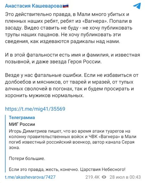 Отметим, что в комментариях ранее виден намек на причастность к провалу операции "вагнеровцев" в Мали руководящего состава ЧВК и их политики назначения на командные должности людей "без мнения, но удобных".