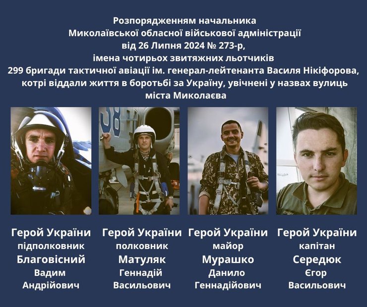 воздушные силы, пилоты, Вадим Благовисный, Геннадий Матуляк, Даниил Мурашко, Егор Середюк, переименование, николаев