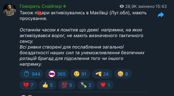Он отметил, что в Макеевке Луганской области российские оккупанты имеют продвижение.