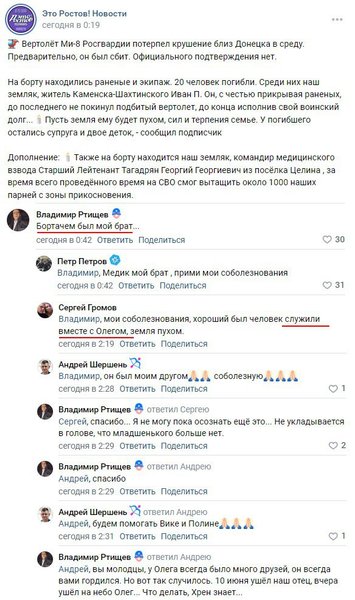 В комментариях под сообщением корреспондент Владимир Ртищев сообщил, что борттехником на этом Ми-8 был его брат Олег.