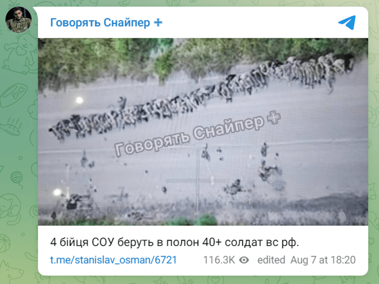Он опубликовал фотографию, которая была сделана с дрона. На фотографии — колонна пленных россиян.