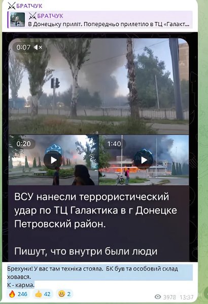 "Лжецы! У вас там техника стояла, БК был и личный состав прятался. К — карма", — написал он.