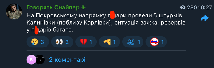 Украинский военнослужащий Станислав Бунятов с позывным "Осман" рассказал, что на Покровском направлении враг провел пять штурмов Калиновки возле Карловки. По его словам, ситуация тяжелая, у врага много резервов.