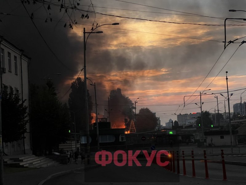 По данным спасателей, обломки ракет попали в корпус котельной одного из образовательных заведений. Также в Святошинском районе произошло возгорание в пункте приема вторсырья и у входа в метро.