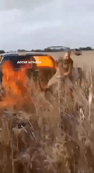 Российский военнослужащий вылил на свою "Ниву", стоящую в чистом поле, несколько литров бензина и поджег ее, хотя и не с первого раза.