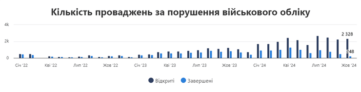 В 2024 году в Украине из-за нарушения правил воинского учета было открыто 21 336 долгов за штрафы. Как информирует сервис мониторинга регистрационных данных Опендатабот, это в 2 раза больше, чем за 2023 год, когда в реестр попало 10 542 производств.