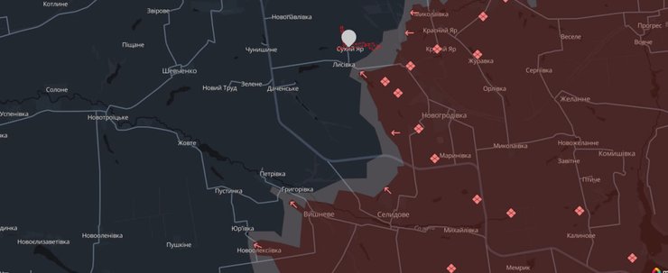 Вблизи Селидово захватчики установили контроль над селом Новоалексеевка. Генштаб ВСУ не комментирует потерю населенного пункта, однако информирует, что сейчас продолжаются бои вблизи Сухого Яра и Григорьевки.