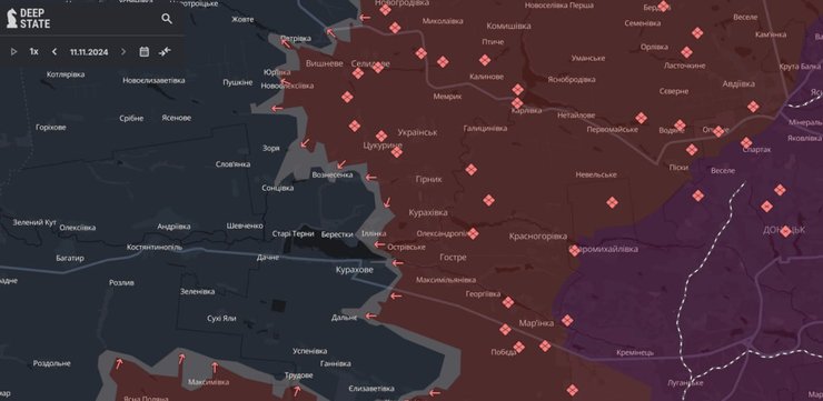 В утренней сводке Генштаба ВСУ 12 ноября сообщалось, что на Кураховском направлении Силы обороны отбили 57 атак. Активнее всего оккупанты пытались продвинуться вперед вблизи Ильинки, Новоселидовки, Воздвиженки, Вознесенки, Новодмитровки, Максимильяновки, Дальнего, Антоновки, Катериновки, Кременной Балки, Сонцовки, Зари и Курахово.