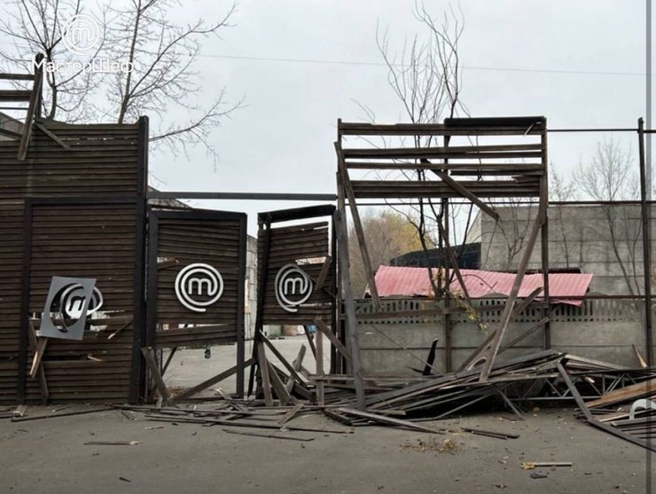 На фото, которое обнародовали в команде "МастерШеф" заметно, что разрушен забор студии, а также само здание, где проходят съемки.