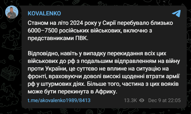 Российские войска могут перебросить из Сирии в Украину: как это повлияет на фронт, — Коваленко