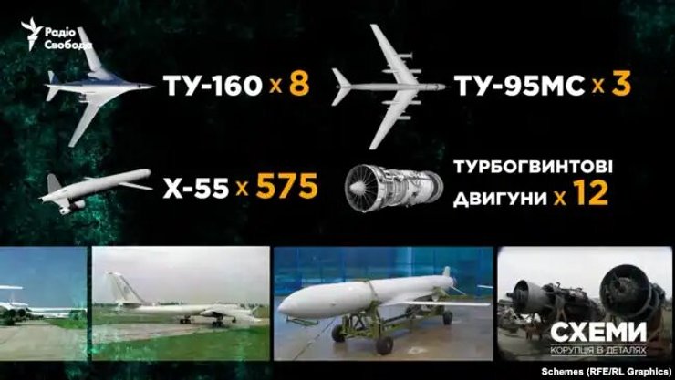Журналисты установили, что 25 лет назад Украина передала России ракеты и стратегические бомбардировщики — в обмен на переданное вооружение Москва отменила часть долга за газ. "Схемы" нашли доказательства того, что армия РФ обстреливает украинские города переданными в 1999 году крылатыми ракетами Х-55, в частности, установили это с помощью анализа серийных номеров самолетов в разысканной в архиве соглашения тех времен, данных из международных авиареестров, а также благодаря сопоставлению с номерами бомбардировщиков.