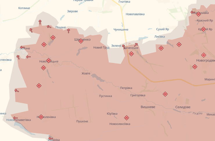 Российская оккупационная армия вошла в села Новоелизаветовка, Даченское, Новый Труд и Волково в Покровском районе. Об этом сообщают в сообществе DeepState.