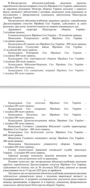 - командующего Сил беспилотных систем Вооруженных сил Украины 600 тысяч гривен;