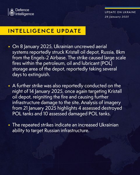 "Повторные удары указывают на возросшую способность Украины нацеливаться на российскую инфраструктуру", — отмечают в разведывательном ведомстве.
