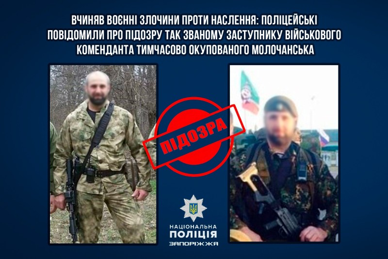 По данным правоохранителей, командир одной из воинских частей ВС РФ занял должность так называемого "заместителя военного коменданта" в Молочанске и вместе с другими неустановленными лицами из рядов вооруженных формирований пытал жителей всего Пологовского района, в который входит город.