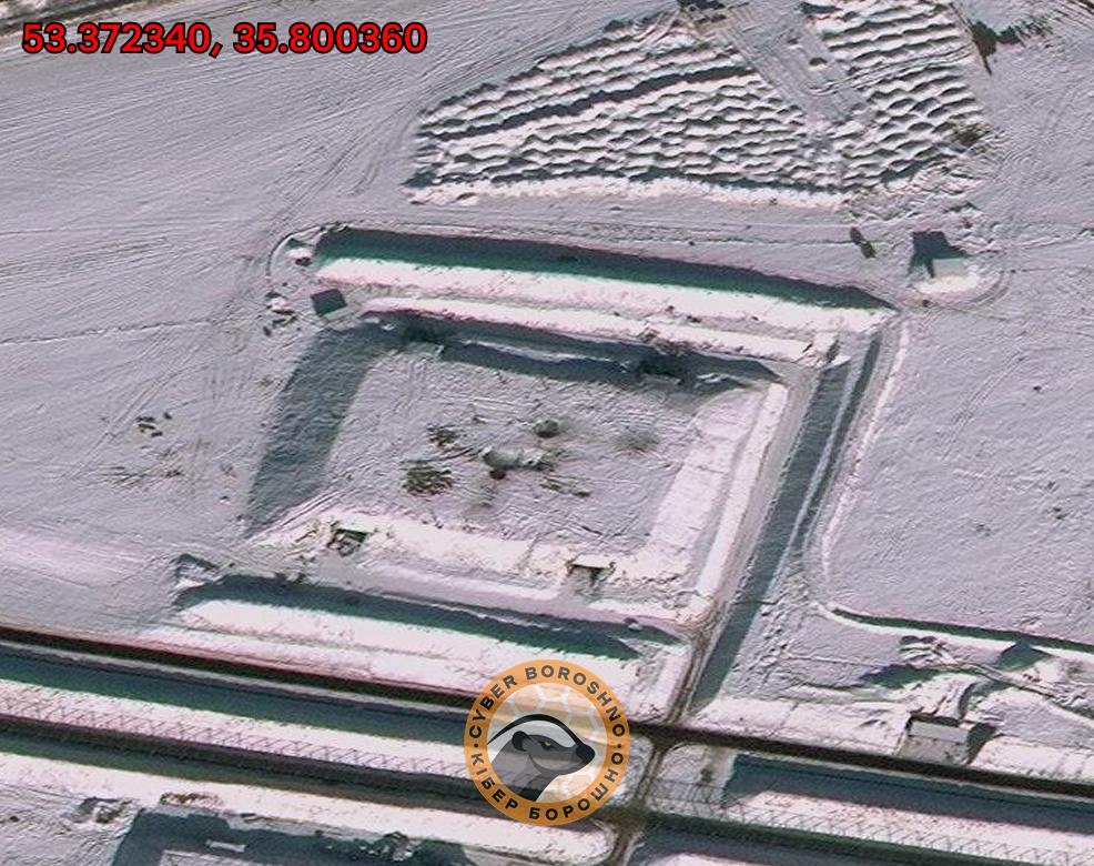 На фото можно увидеть заснеженную местность, очертания подземного сооружения и следы от колес на автотрассе. По центру сооружения заметно несколько сероватых пятен. Если внимательно присмотреться, что заметно минимум два сквозных отверстия. Подчеркнем, данные нуждаются в уточнении.