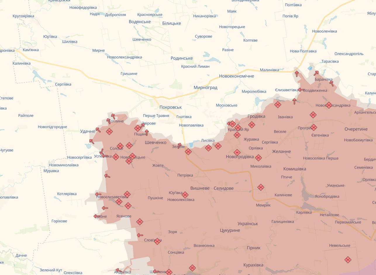 Несмотря на успехи ВСУ, российские войска продолжают штурмовые действия в этом районе. По информации аналитиков, подразделения ВС РФ пытаются закрепиться на перекрестке трассы Покровск-Константиновка возле Малиновки, что может осложнить оперативную обстановку.