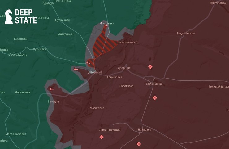 Кроме этого, россияне увеличили контроль в направлении села Фиголевка и зашли на южные его окраины. Аналитики отметили, что ВС РФ заняли еще один район в Двуречной.