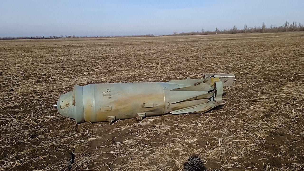 Бомба, по данным соцсетей, пораженная Силами обороны, упала в полях в районе Покровска. Она похожа на ФАБ-1500-М54, которую год назад презентовали министру обороны РФ Сергею Шойгу.