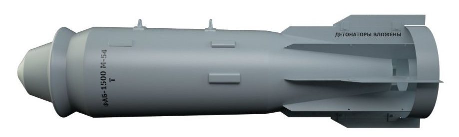 Однако бомба на фото больше похожа на другой 1,5-тонный КАБ — неуправляемую фугасную авиабомбу ФАБ-1500-54. Как сообщали в "Милитарном", ее точный вес — 1550 килограммов, и 675 из них принадлежит тротилу.