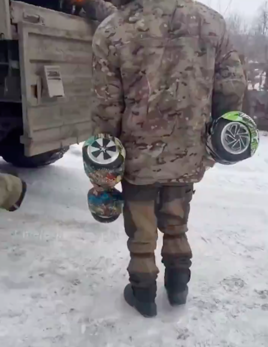 Но, скорее всего, россияне украли эти игрушки у украинских мирных жителей и забирают их домой как мародеры — или чтобы переделать их в колесную базу для экспериментального дрона, который впервые появился в прошлом году. На пересеченной, заснеженной местности украинского поля боя ховерборд гораздо менее эффективен для пехоты.