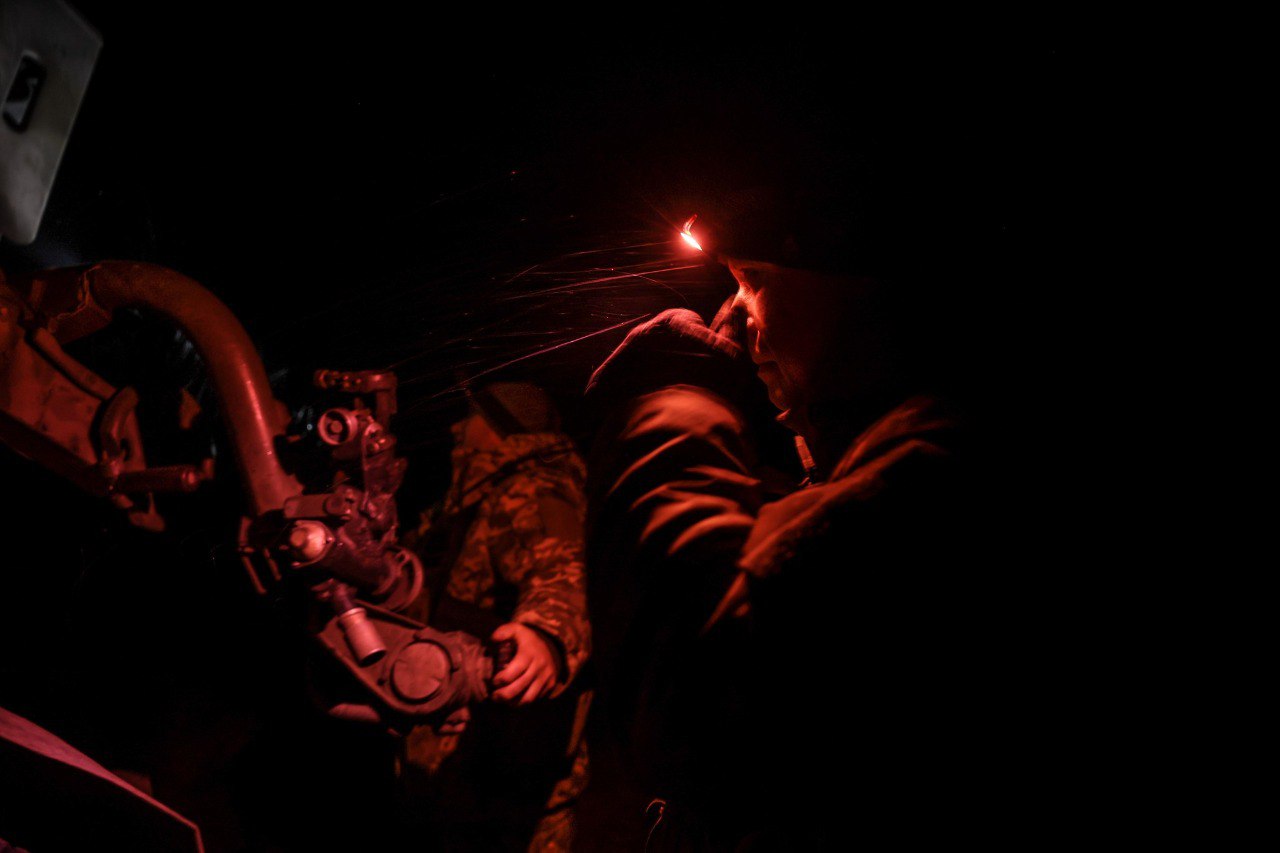 На опубликованном фото — кадры ночной боевой работы 24-й отдельной механизированной бригады им. короля Даниила, которая вместе с другими подразделениями Сил обороны ежедневно противостоит оккупационной группировке в Часовом Яру.