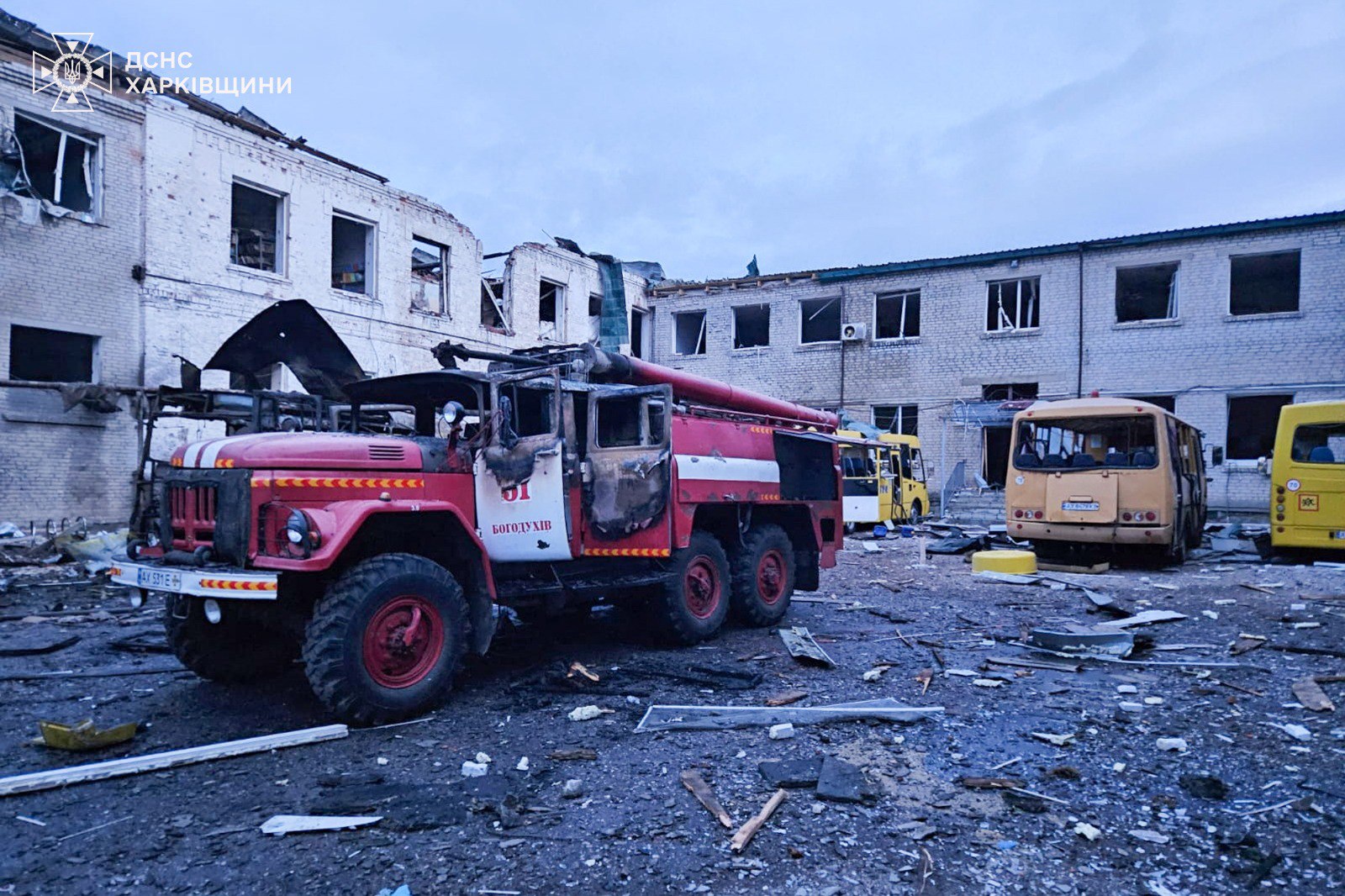 В ГСЧС добавили, что враг дважды наносил удары по Богодухову, в результате чего пострадал местный лицей, повреждены 18 домов, 5 школьных автобусов и пожарный автомобиль.